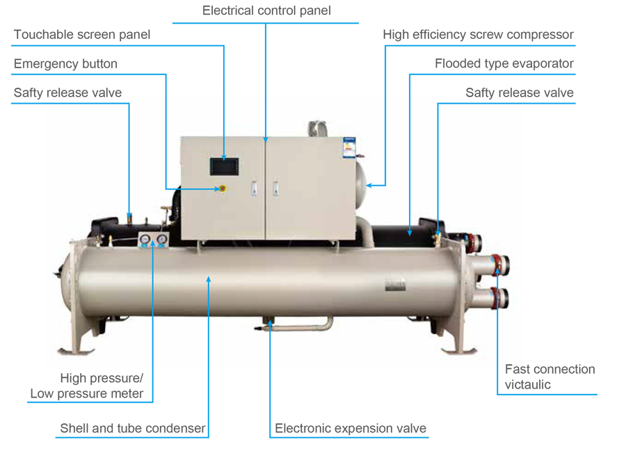 Flooded evaporator makes cleaning inside of pipes possible, and guarantees high reliability.